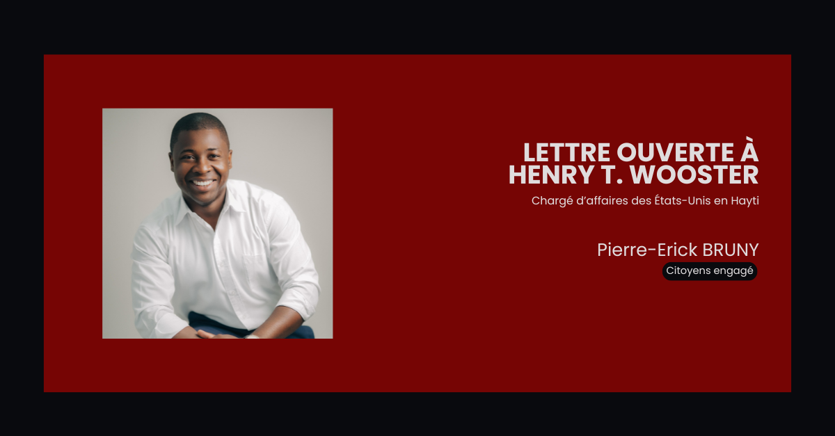 Lettre ouverte à Henry T. Wooster, Chargé d’Affaires des États-Unis en Hayti Monsieur Henri T. Wooster, Je vous écris sans détour, sans filtre et sans cette diplomatie hypocrite que vous utilisez comme voile. Permettez-moi d’aller droit au but: Que faites-vous réellement en Hayti? Quel rôle prétendez-vous jouer dans un pays dont vous ne portez ni […]